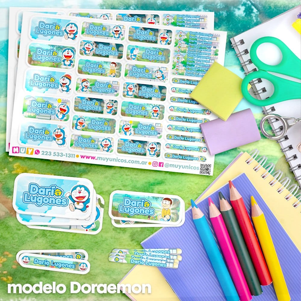 Etiquetas Escolares para Imprimir | Doraemon (Archivo Digital PDF)