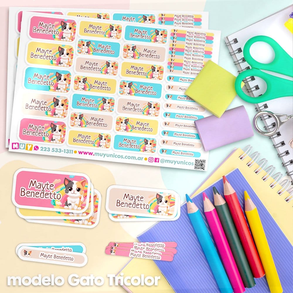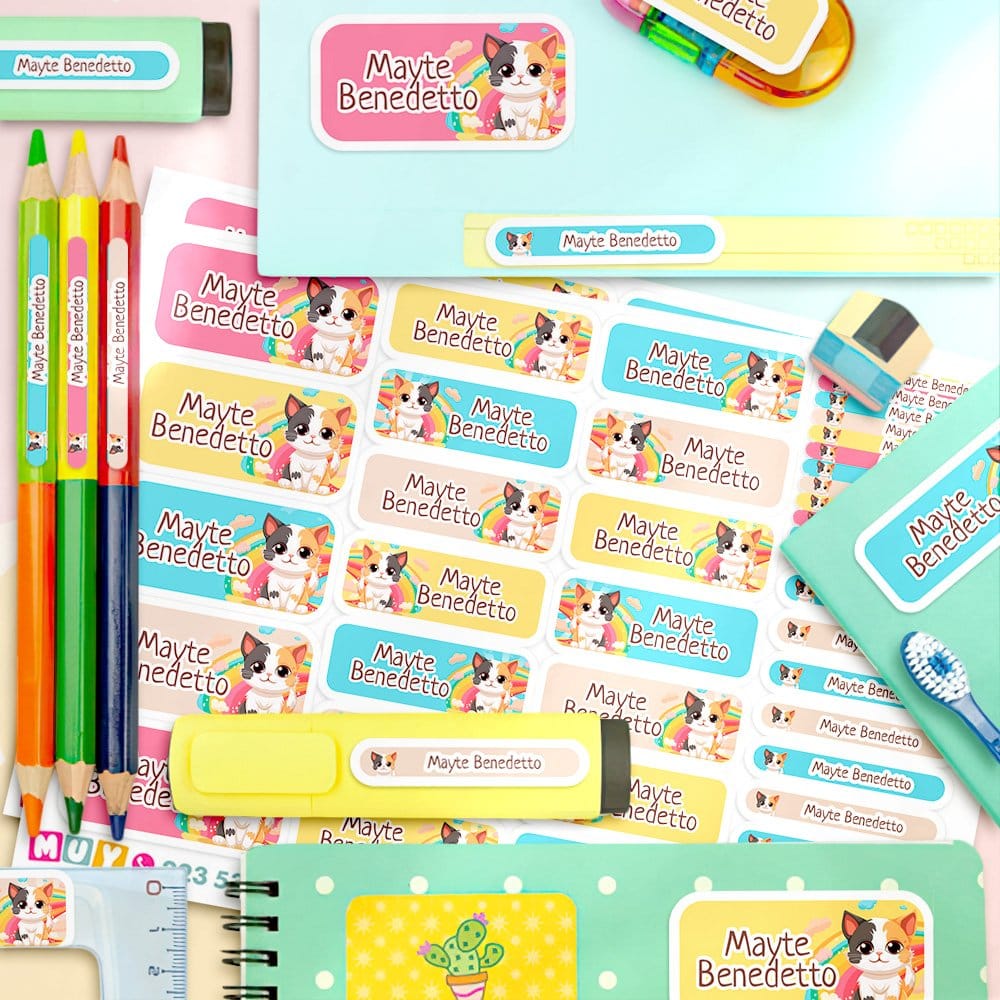 Etiquetas Escolares para Imprimir | Gato Tricolor (Archivo Digital PDF)