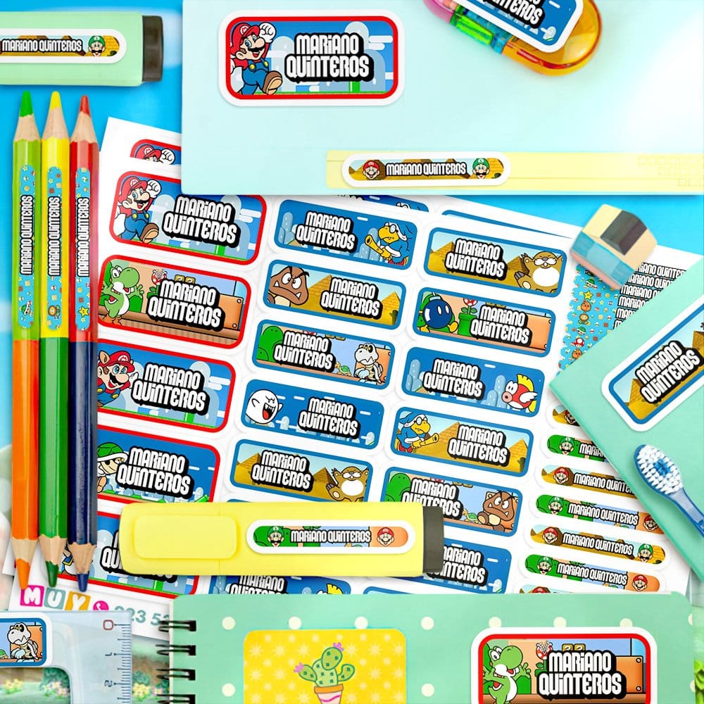 Etiquetas Escolares para Imprimir | Mario Bros (Archivo Digital PDF)