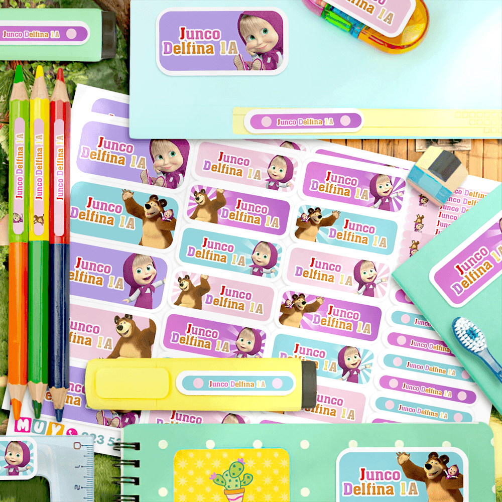 Etiquetas Escolares para Imprimir | Masha y el Oso (Archivo Digital PDF)